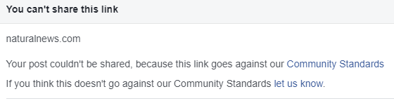 I am unable to share links from two of my favorite websites, Brighteon.com and NaturalNews.com. It appears that all links from both sites are currently prohibited by Facebook. I find these sites to offer valuable content, and Brighteon is a minority-owned, woman-owned video platform that features documentaries on pioneering women who fight against oppression and fascism. Please restore my ability to share links from these two sites, thank you.