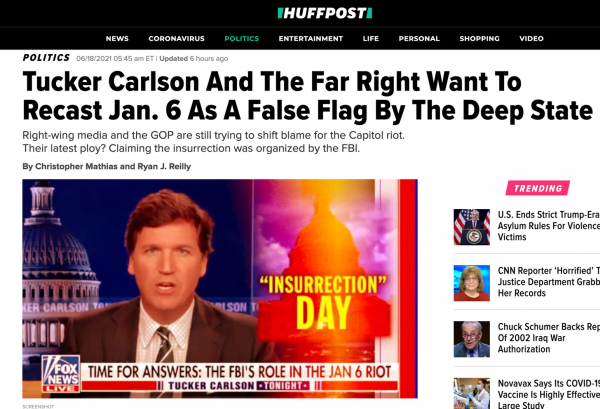 As it usually does, The Washington Post — which told Americans that Russians had invaded the U.S. electricity grid and that a huge army of Kremlin-loyal American writers was shaping our discourse — echoed the instant CNN/liberal consensus by mocking it as “Tucker Carlson’s wild, baseless theory,” claiming that “it’s the kind of suggestion journalists in other organizations would quite possibly be fired for if they sought to push it nearly as hard.” The standard liberal blob of HuffPost/ DailyBeast/ BusinessInsider all recited from the herd script. “A laughable conspiracy theory,” chortled The Huffington Post, who has done more to help the FBI find citizens allegedly at the Capitol riot than any local law enforcement agency.