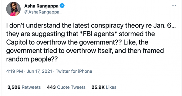 But all the mockery in the world does not make these questions disappear. Of course the FBI was infiltrating the groups they claim were behind these attacks. There may be good reasons why that did not enable the FBI to stop this riot or why they have not yet indicted these ringleaders. But those answers are not yet known. And gullible conspiracists are not the ones who want answers to these questions but, instead, are the ones doing everything possible to protect the FBI from having to provide them.