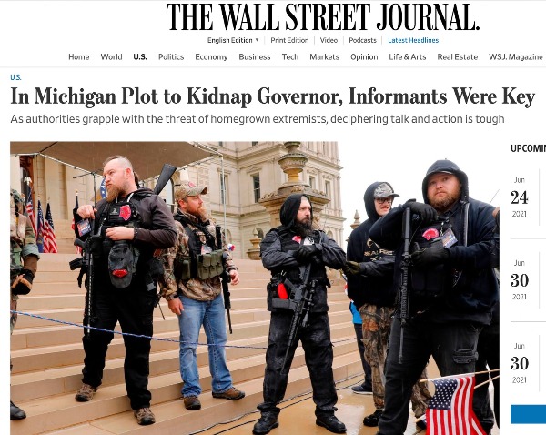 The implications of these facts are obvious. It seems extremely likely that the FBI had numerous ways to know of any organized plots regarding the January 6 riot (just as the U.S. intelligence community, by its own admission, had ample advanced clues of the 9/11 attack but, according to their excuse, tragically failed to “connect the dots“). There is no doubt that the FBI has infiltrated at least some if not all of these groups — which it has been warning for years pose a grave national security threat — with informants and/or undercover spies. It is known that Proud Boys leader Enrique Tarrio has served as an FBI informant in the past, and the disrupted 2020 plot by Three Percenters members to kidnap Gov. Gretchen Whitmer (D-MI) was shaped and driven by what The Wall Street Journal reported were the FBI’s “undercover agents and confidential informants.”