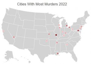 Democrat-run St. Louis has the highest murder rate in the whole country, with a whopping 70 murders for every 100,000 people. The twenty cities in the United States with the highest murder rates (murders per 100,000 people) are as follows: